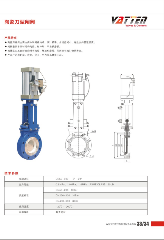 陶瓷刀型閘閥。陶瓷刀閘閥主要由閥體和閘板構(gòu)成,設(shè)計(jì)緊湊,占據(jù)空間小,有效支持管道強(qiáng)度。閘板表面單面襯結(jié)構(gòu),陶瓷耐沖刷,不易被磨損。閥體進(jìn)口及密封面均稱有陶瓷,增加耐磨性,從而延長(zhǎng)閥門使用壽命。廣產(chǎn)品廣泛用于礦山、冶金、化工、電力等易磨損工況。