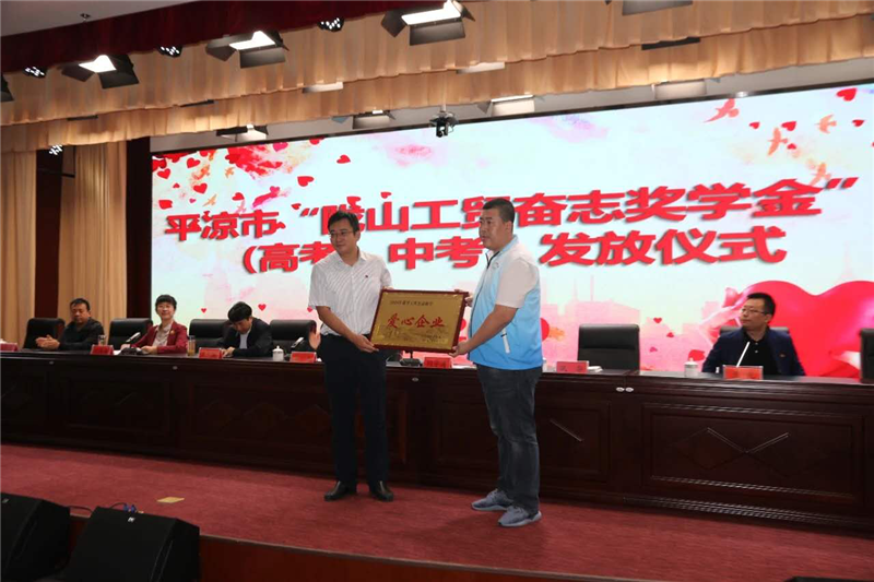 發(fā)放儀式上,平?jīng)鲭]山工貿(mào)有限責(zé)任公司總經(jīng)理閆宇濤先生作了致辭,勉勵(lì)同學(xué)們要樹(shù)立遠(yuǎn)大理想,樂(lè)觀勇敢,用自己的勤奮和努力創(chuàng)造美好的未來(lái),努力成為國(guó)家的棟梁之才;獲得“平?jīng)鲭]山工貿(mào)奮志獎(jiǎng)學(xué)金”的21名高考優(yōu)秀學(xué)子和30名中考優(yōu)秀學(xué)子現(xiàn)場(chǎng)領(lǐng)取了獎(jiǎng)學(xué)金及證書;受獎(jiǎng)勵(lì)學(xué)生代表向企業(yè)和社會(huì)各界愛(ài)心人士表達(dá)了衷心的感謝,表示必將飲水思源,銘記幫助之恩,勵(lì)奮斗之志,發(fā)奮學(xué)習(xí),不負(fù)厚愛(ài)和希望。同時(shí),共青團(tuán)平?jīng)鍪形蚱經(jīng)鲭]山工貿(mào)有限責(zé)任公司頒發(fā)了捐資助學(xué)獎(jiǎng)牌,對(duì)愛(ài)心企業(yè)的愛(ài)心捐資幫助表示衷心的感謝。